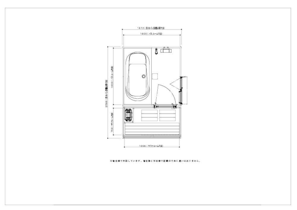 - 図面_リラサウナ(RW)_ドア位置AR_平面図_ベンチはめ込み式照明