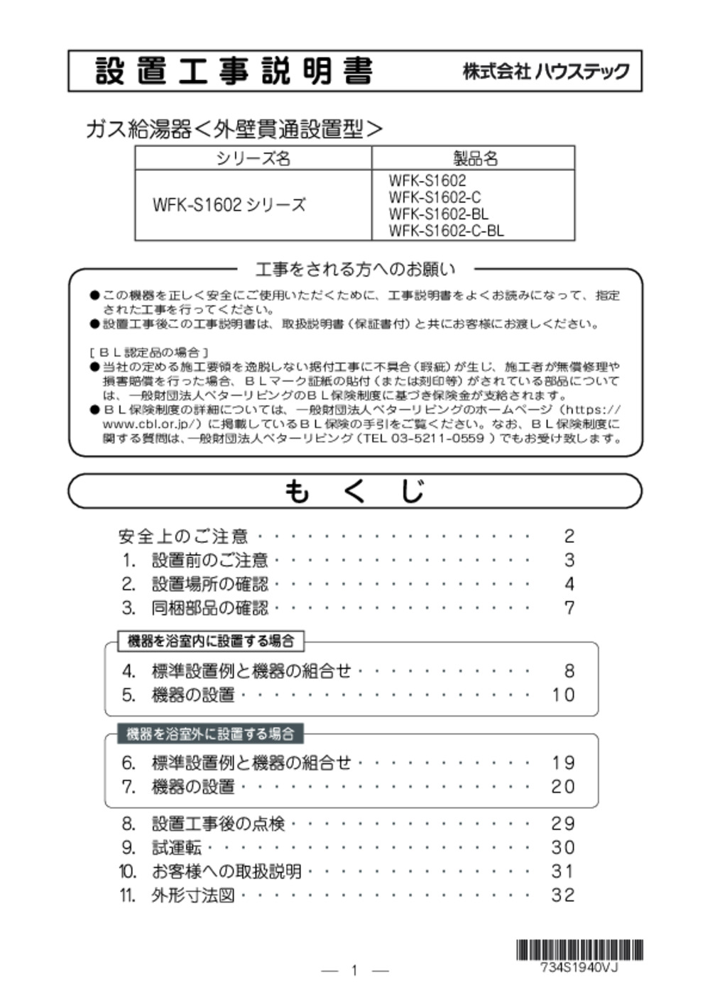 - 設置工事説明書_ガス給湯器_WF_FK-S1602-C