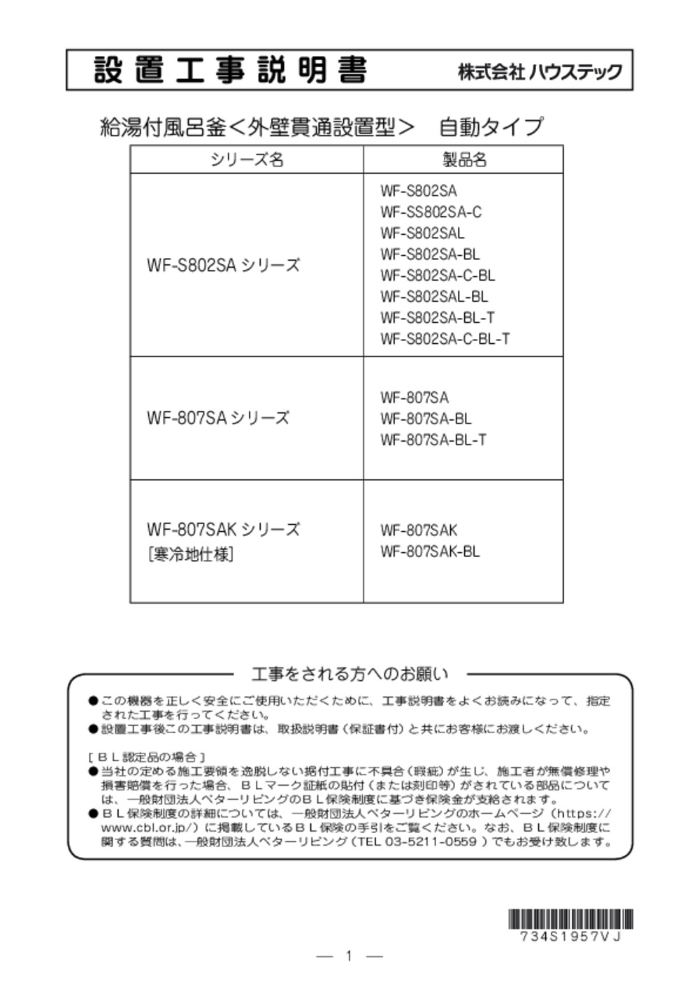 - 設置工事説明書_ガス給湯器_WF_WF-807SAK