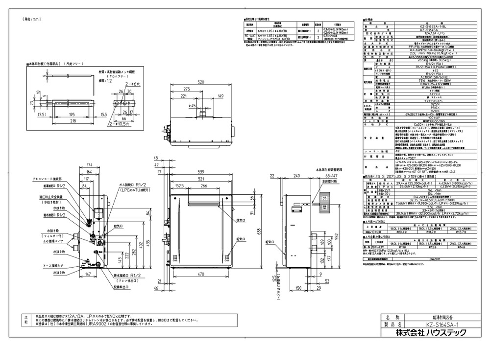 - 図面_ガス給湯器_KZ_KZ-S164SA-1