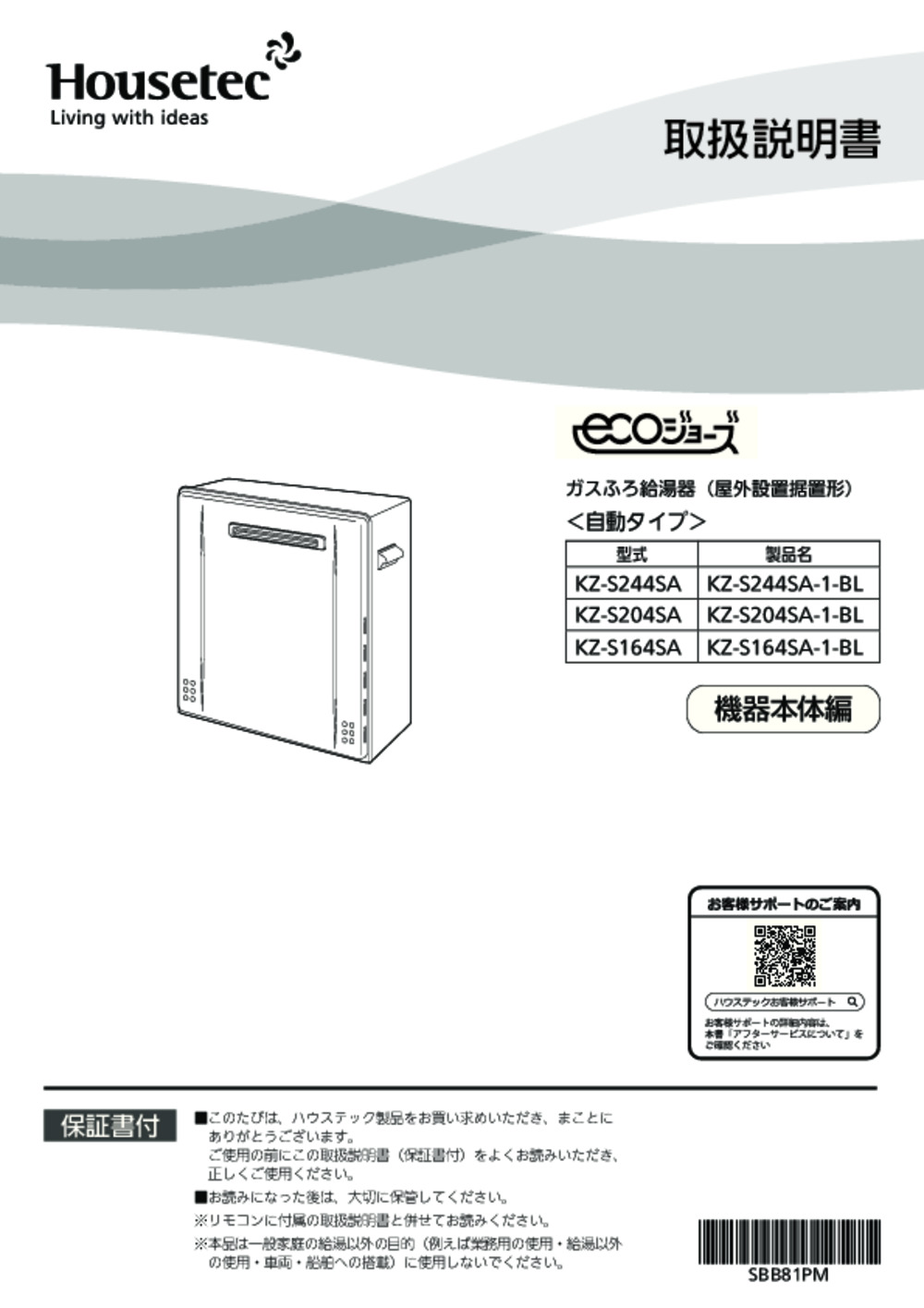 - 取扱説明書_ガス給湯器_KZ_KZ-S164SA-1