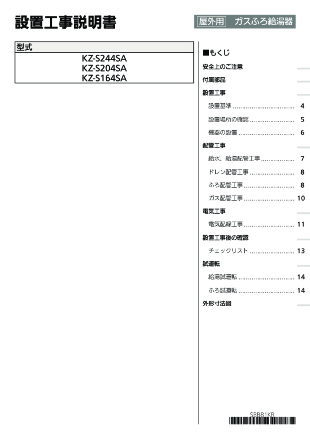 - 設置工事説明書_ガス給湯器_KZ_KZ-S164SA-1